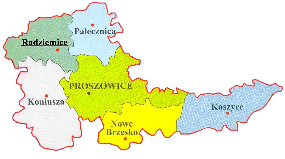Gmina Radziemice jest jedną z 6 gmin powiatu proszowickiego Powierzchnia administracyjna gminy Radziemice wynosi 5785 ha, z czego