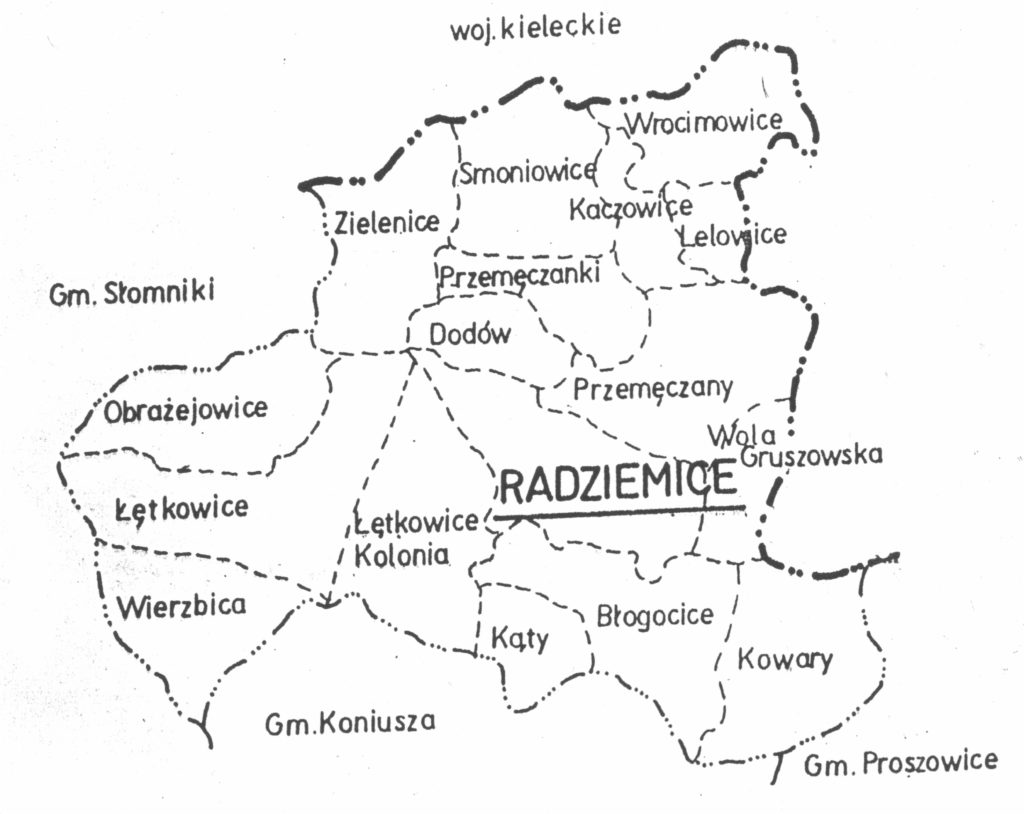 Mapa gminy Radziemice.